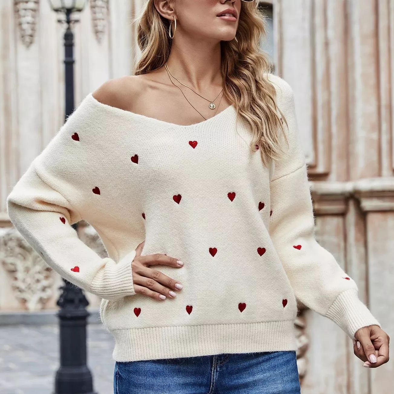 Indulge in comfort and style with our V Neck Embroidery Heart Sweater. Shop now and experience the perfect blend of fashion and coziness. Embrace the winter season with confidence and charm!