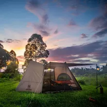 Our tent features a distinctive hexagon design with doors on all four sides, providing 360-degree access to sunlight, breeze, and stunning views. The slanted walls enhance wind resistance and structural stability, making it a reliable shelter in unpredictable outdoor conditions. Crafted from high-quality 50D Polyester ripstop fabric, this tent is built to last and withstands wear and tear from your rugged adventures.