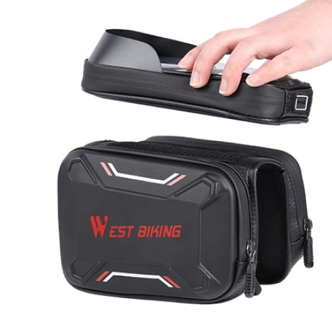 This is the best case I've owned because of the cell phone holder slot with touchscreen capable clear window. I like to track my trips using apps on my iPhone and my prior case resulted in my iPhone falling out and landing on the ground. Luckily for me I was on grass at the time otherwise my phone would have been smashed. I have another zipper case I can put my phone in but then I couldn't see it and use maps to guide my route. With this case, there's no way for it to ever fall out and I can still see the screen. It also has a large amount of storage space under the phone slot for my small bicycle tool and a snack in case I get hungry. It also has enough room in the case for me to carry a portable battery that I keep my phone plugged into so I don't have to worry about running out of power. With my prior case, I was always getting my hands caught up in the cord that ran from the battery in the case to the phone on a holder on my handle bar which resulted in my phone breaking free from the handle bar mounting. Most of the time the phone stayed hanging from the power cord but it did fall completely to the ground as I mentioned earlier. I couldn't chance that happening on the road. The case stayed securely attached to my bike with strong velcro straps that are long enough to fit on any bike configuration. This is the best case for protecting your phone while riding and being able to carry a small bicycle tool, a snack, and a portable battery for the phone - all in the same bag.
