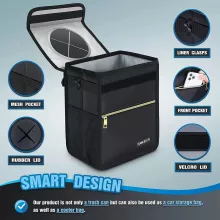 - More Than Just a Trash Can: Double it up as a storage bag with 2 mesh pockets and 1 zipper pocket or even as a cooler bag to keep your beverages chilled!