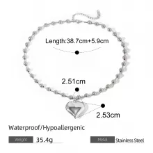 Bold, Beautiful, and Timeless: Waterproof Stainless Steel Heart Pendant Necklace