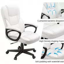 Introducing the White High-Back Adjustable Executive Office Chair, a perfect blend of comfort and style for your professional and home office environments. This chair is not just a seat; it’s a statement of elegance and efficiency. Its white faux leather upholstery is not only eye-catching but also provides a touch of sophistication to any workspace.