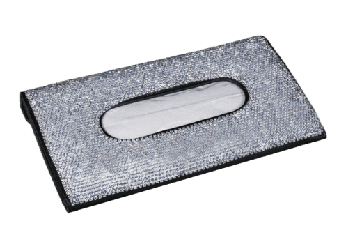 I love this beautiful, blingy tissue holder. It is SO sparkly! Perfect addition to the other aqua crystal decorations I have in my car. I put it on the driver door pocket instead of on the visor. That way it is easy to reach but doesn't distract me. I gave it 4 stars just because if you fill it all the way with tissues it is hard to get them out without ripping. For best results only put in a small amount, so that means frequent refilling. Still, absolutely worth it for the pretty bling it adds!
