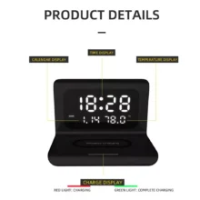 Introducing the ultimate blend of creativity, technology, and convenience – our multifunctional wireless charging pad with LED clock and thermometer. Say goodbye to the clutter of cables and say hello to a modern, sleek charging solution that doubles as an elegant desk accessory.