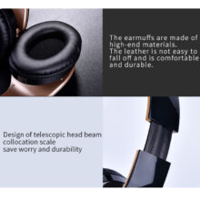 Our ear-wrapped design allows for an ergonomic wear during use. Sound remains reserved to your ears with superb sound quality and reduced leakage. The ear muffs are made of leather for supportive wear while a telescopic head beam on the headphones provides easy adjustability. A sleek, all-over black color provides a modern and clean look. Our headphones measure 6.7 x 7.6 in (L x H) and widths of 1.2 in from the top of the headband and 3 in at the bottom where the ear muffs are.