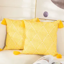 Add a pop of color and modern design to your living space with this set of Yellow Geometric Embroidery Cushion Covers. Made from 100% cotton canvas, these pillow covers are soft, durable, and perfect for creating a cozy yet stylish atmosphere in your home. The eye-catching geometric embroidery in a vibrant yellow hue gives your decor an instant lift, whether placed on your sofa, bed, or favorite armchair. These decorative pillowcases come in two convenient sizes, 45x45cm and 30x50cm, allowing for easy pairing and flexible styling.